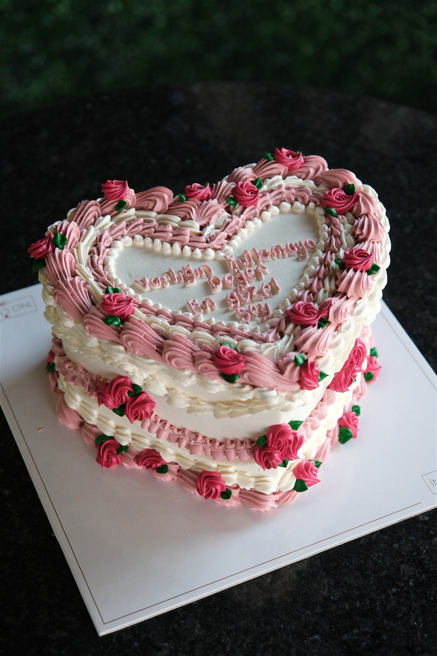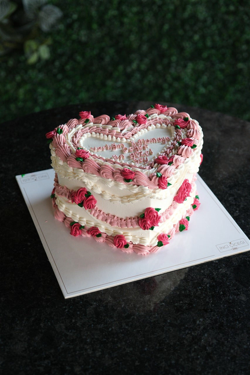Butik Kalp Nostaljik Pasta Beyaz Kırmızı (Vintage Cake)