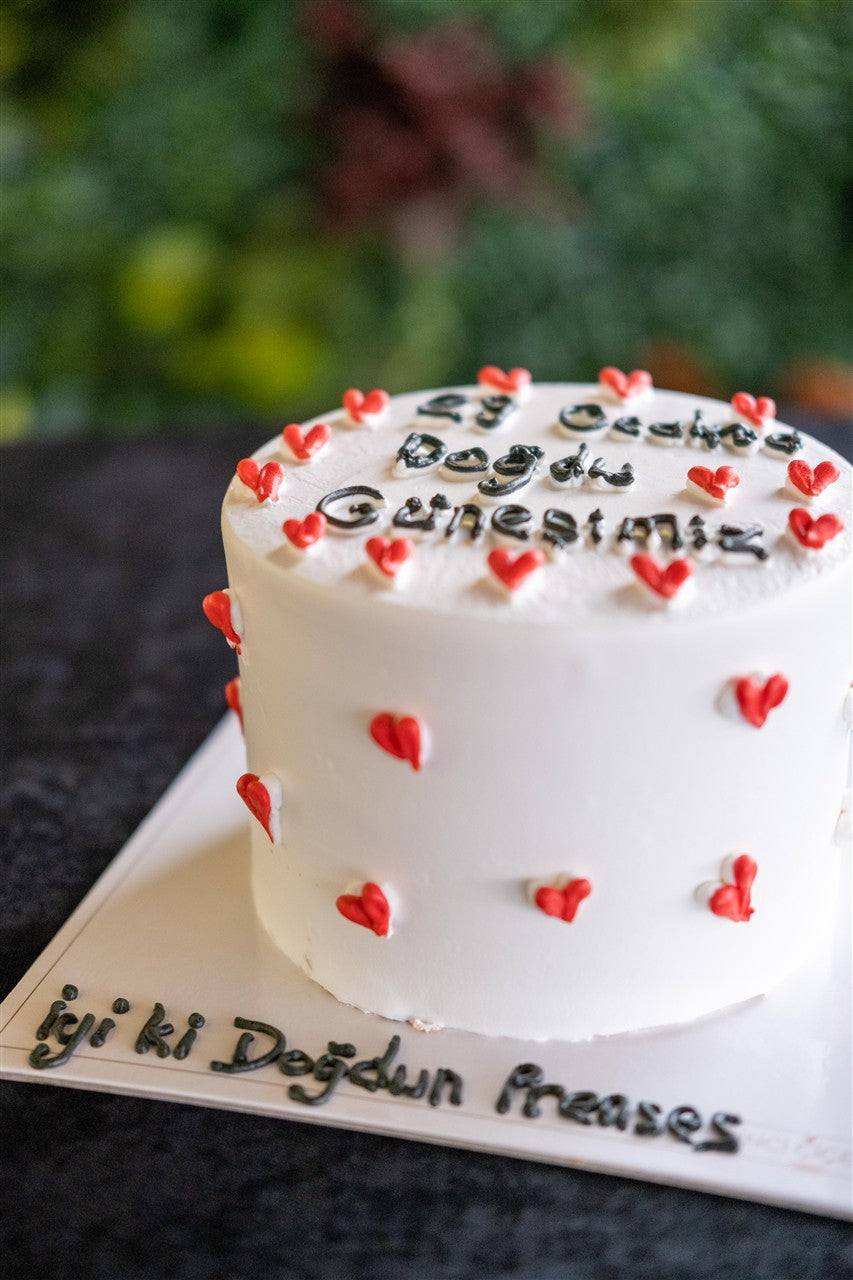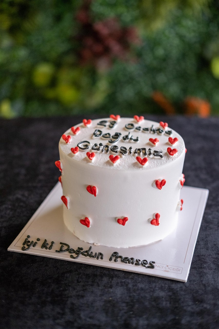 Butik Motto Beyaz Üstü Kırmızı Kalpli